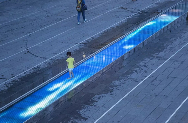 水本無形,它的物理特性讓它能輕易地跟隨容器而呈現(xiàn)不同的面貌。獨特的延展性使得水能呈現(xiàn)無以計數(shù)的不同效果。燈光的布置,介質(zhì)的紋理,顏色和動態(tài)都能給水帶來無窮的變化。
